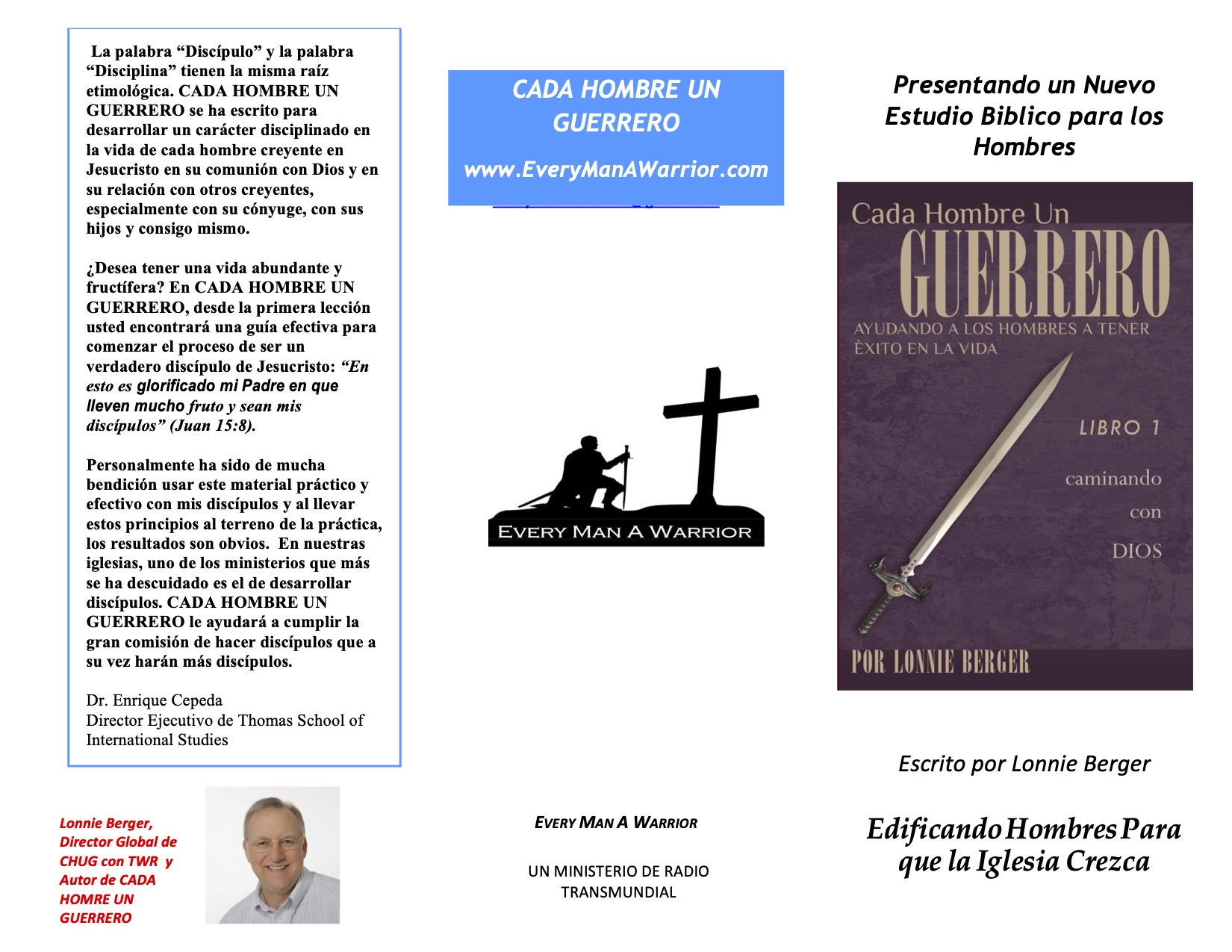 “Cada Hombre Un Guerrero” es un estudio bíblico de discipulado que ayuda a los hombres a tener éxito en la vida; les ayuda a ganar las batallas que enfrentan todos los dias. ¡El objetivo es tener un ministerio de discipulado de hombres que se multiplique!
